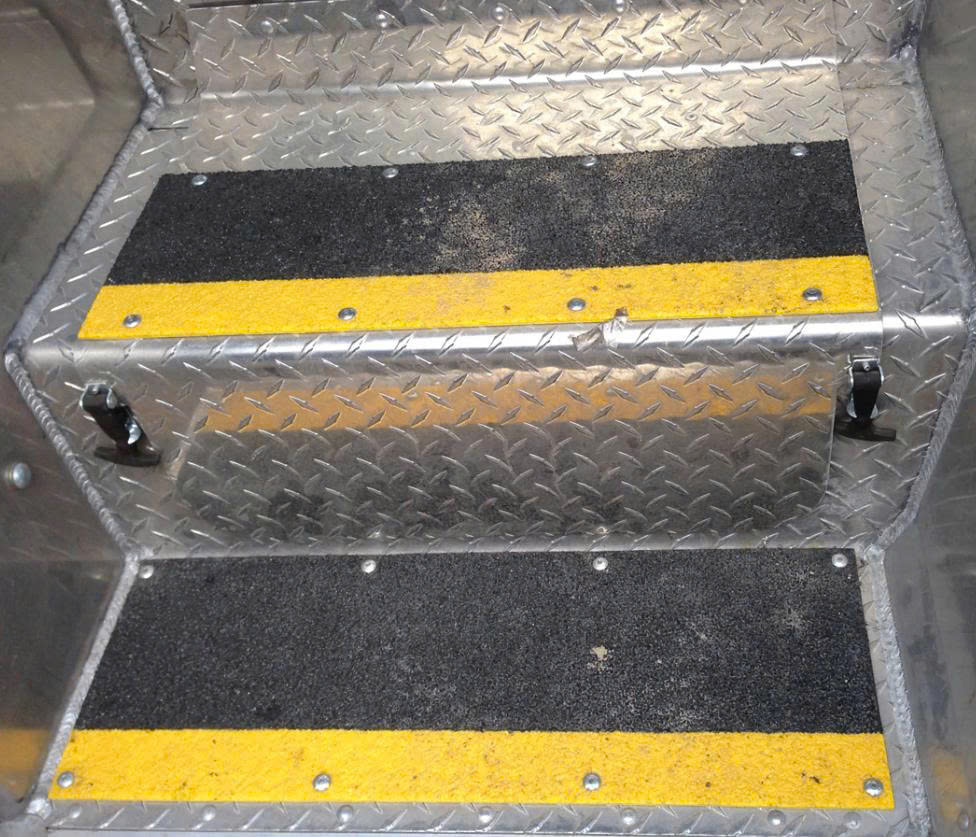 _ Chất liệu nhựa gia cường, phủ hạt chống trượt.