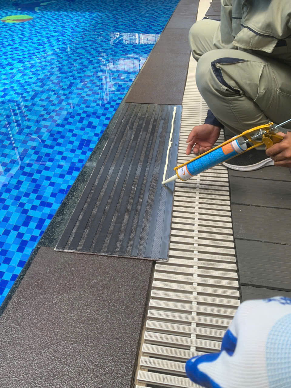 Công trình sử dụng tấm dán chống trượt bể bơi composite FRP: