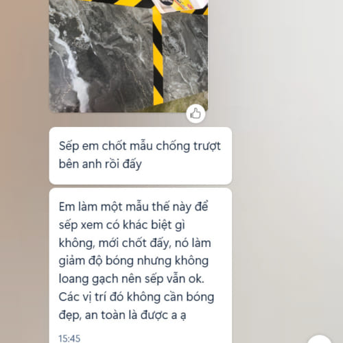 _ Nếu muốn sử dụng trên các loại gạch đó mọi người sẽ phải pha loãng tỉ lệ 1:1 or 1:2 , và phải cân đối giữa việc tăng ma sát và giảm độ bóng. Thử nghiệm ở 1 góc nhỏ.