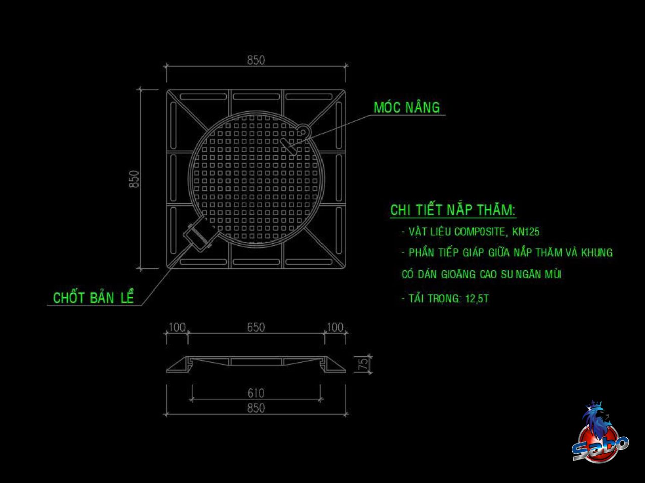 • Tên sản phẩm: Nắp hố ga composite 850×850 khung dương nắp tròn