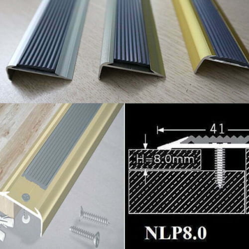 Nẹp chống trơn mũi bậc cầu thang chân 8 mm NLP8.0 chuyên dùng để gắn vào vị trí mũi bậc cầu thang để chống trơn trượt.