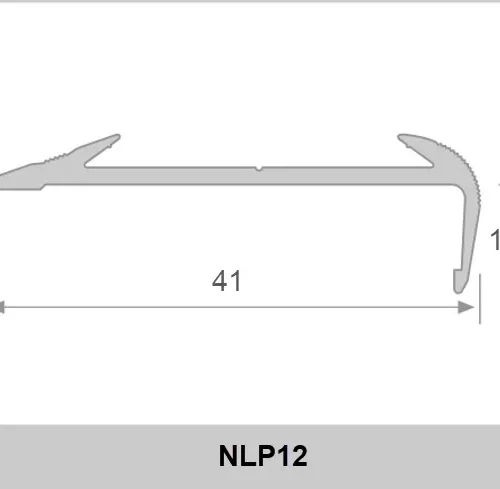 Nẹp chống trượt cầu thang NLP12, còn được gọi với các tên gọi là nẹp nhôm chống trơn chân 12 ly, nẹp mũi bậc 12mm, nẹp nhôm mũi bậc chân 12 ly, nẹp chống trơn cho bậc cầu thang lát gạch, nẹp nhôm chống trơn cho bậc cầu thang gỗ, nẹp chống trơn cho mũi bậc không có lợi.