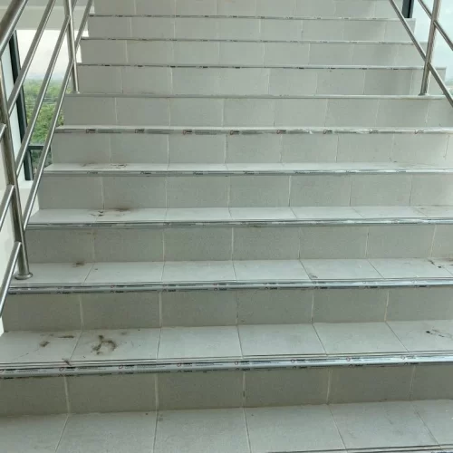Một số hình ảnh công trình thi công sử dụng nẹp nhôm chống trơn gắn mũi bậc cầu thang NLP12 màu nhôm bạc: